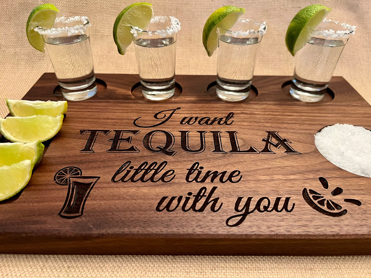 Personalized tequila, whiskey, beer, and wine drink flight boards for any occasion.
