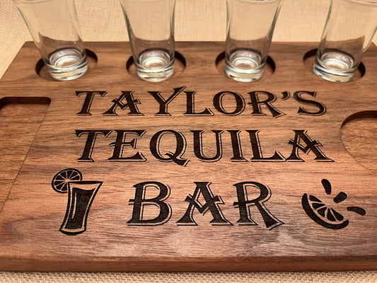 Personalized tequila, whiskey, beer, and wine drink flight boards for any occasion.
